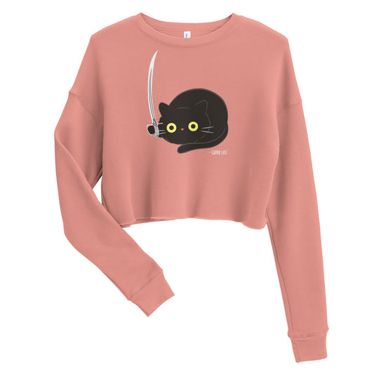 Cute Black Cat plays with Sabre Crop Sweatshirt